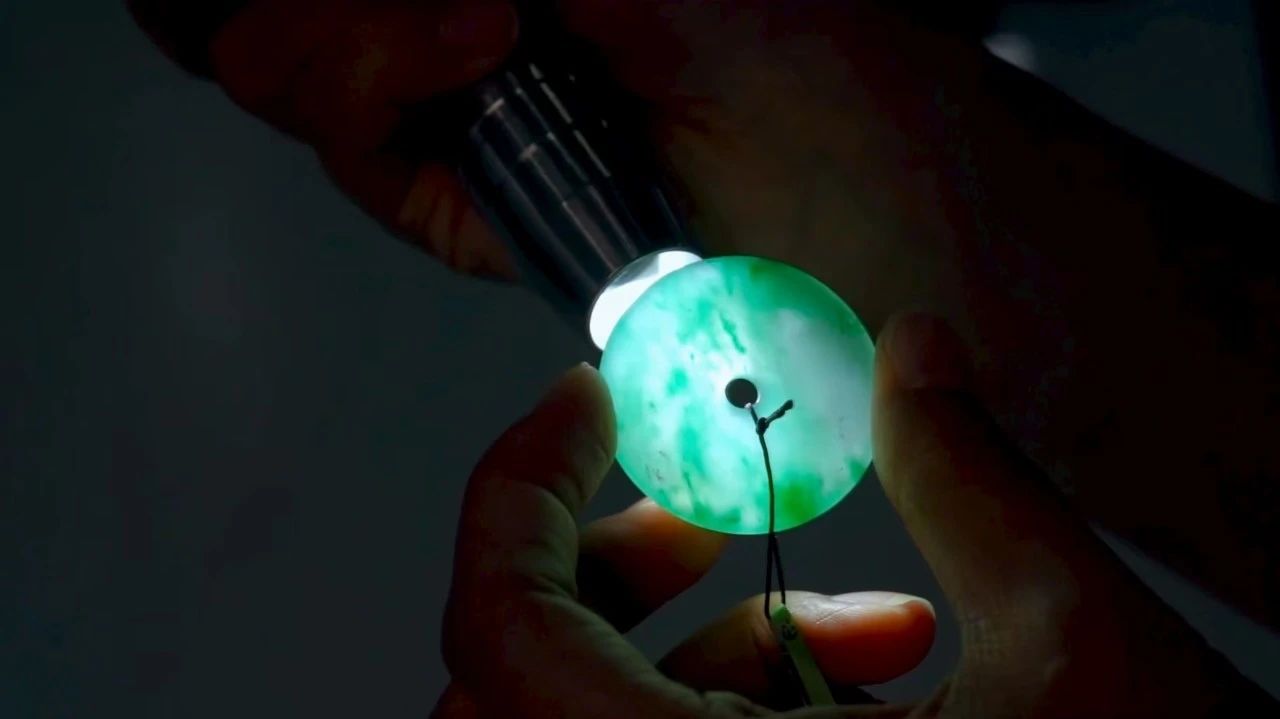 如何让这些“地球记忆”被现代科技读懂?云检瑞丽实验室的检测师严格遵循《非洲翠 鉴定与分类》团体标准,用红外光谱仪捕捉显晶质石英的特征峰信号,用显微成像系统观察晶体结构,放大观察矿物包体。这些独特的“矿物基因”经科学解析,共同构成了非洲翠独一无二的“身份密码”。